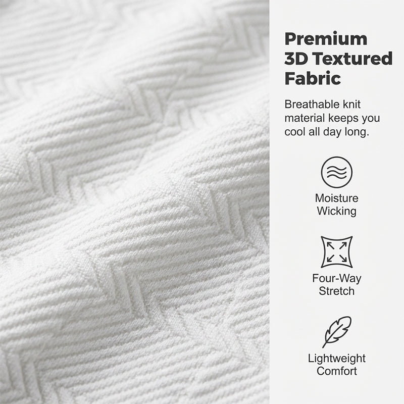 PREMIUMTYG MED 3D-STRUKTUR – Tillverkat av högkvalitativt, andningsbart tyg med ett unikt stickat mönster i 3D-struktur. Materialet garanterar optimal luftcirkulation, vilket håller dig sval och torr under varma sommardagar.