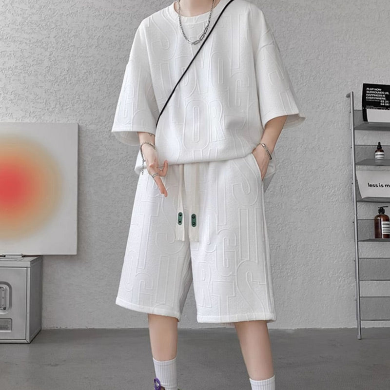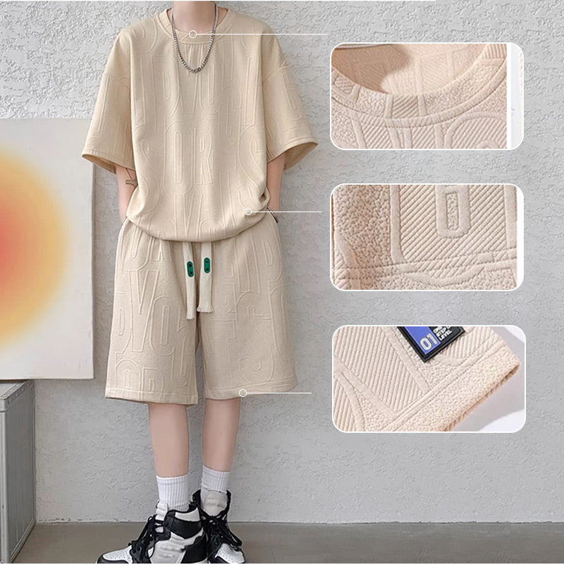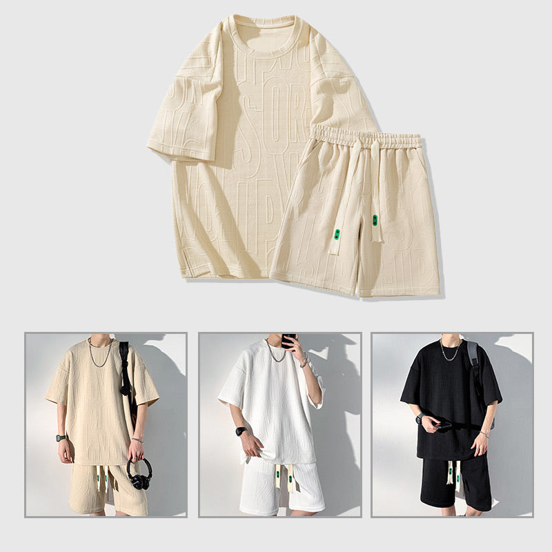 Den här träningsoverallen innehåller en kortärmad T-shirt och matchande shorts, vilket ger en koordinerad och moderiktig look. Den här träningsoverallen är tillverkad av högkvalitativa material och säkerställer andningsförmåga, hållbarhet och rörelsefrihet.